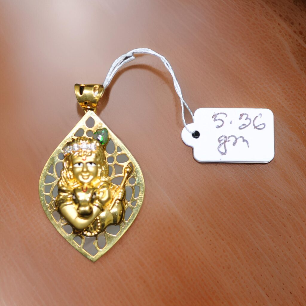Made from premium 22kt gold, the pendant features a meticulously detailed depiction of Lord Krishna, embodying the deity’s wisdom and enchanting charm. The rich gold hue enhances the pendant’s radiance, ensuring it shines brilliantly and retains its allure for generations.