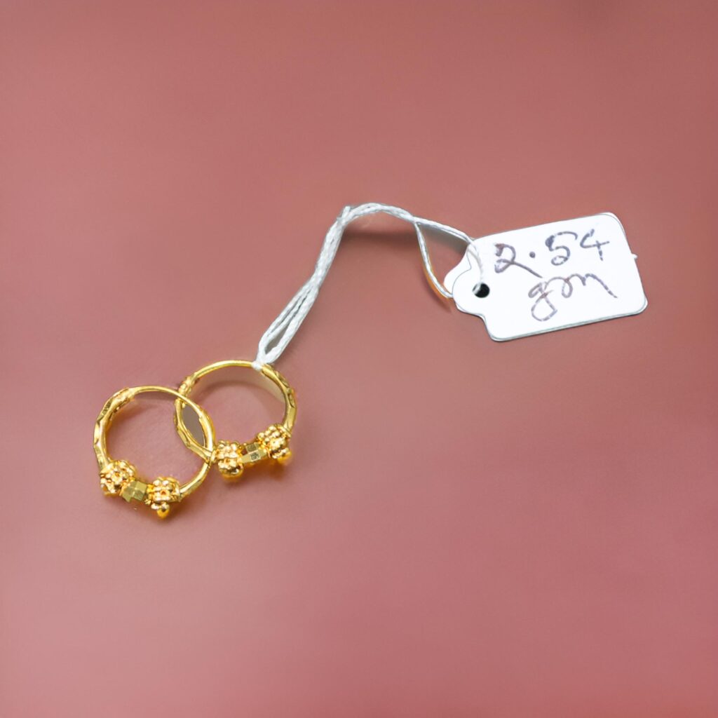 Elevate your elegance with these gleaming 22kt gold earrings, weighing 4.88 grams and adorned with exquisite stones. These earrings are designed to captivate with their sophisticated blend of shimmering gold and sparkling stones, creating a look that is both luxurious and timeless. The intricate design showcases the brilliance of the stones, reflecting light beautifully and adding a touch of glamour to any ensemble. Perfect for special occasions or adding a dash of opulence to your everyday style, these earrings are lightweight enough for comfortable wear throughout the day. The rich, golden hue of the gold complements all skin tones, making these earrings a versatile and cherished addition to your jewelry collection. Crafted with superior craftsmanship, they ensure a standout presence whether worn alone or paired with other pieces. Treat yourself or a loved one to the timeless beauty and elegance of these stone-studded gold earrings, and let their gleaming opulence make every moment shine.