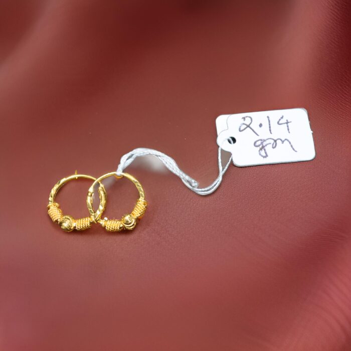 Experience the grace of gold with these beautifully crafted 22kt gold earrings, weighing 2.14 grams. Their elegant design and flawless finish make them a must-have accessory for any jewelry lover. These earrings are perfect for enhancing your look, whether it’s a day at the office or an evening out. The rich, warm glow of the gold complements all skin tones, adding a touch of luxury and sophistication to your style. Crafted with care and precision, these earrings are a testament to the enduring beauty and value of gold. Wear them alone for a subtle statement or pair them with other pieces from our collection for a coordinated, chic look.