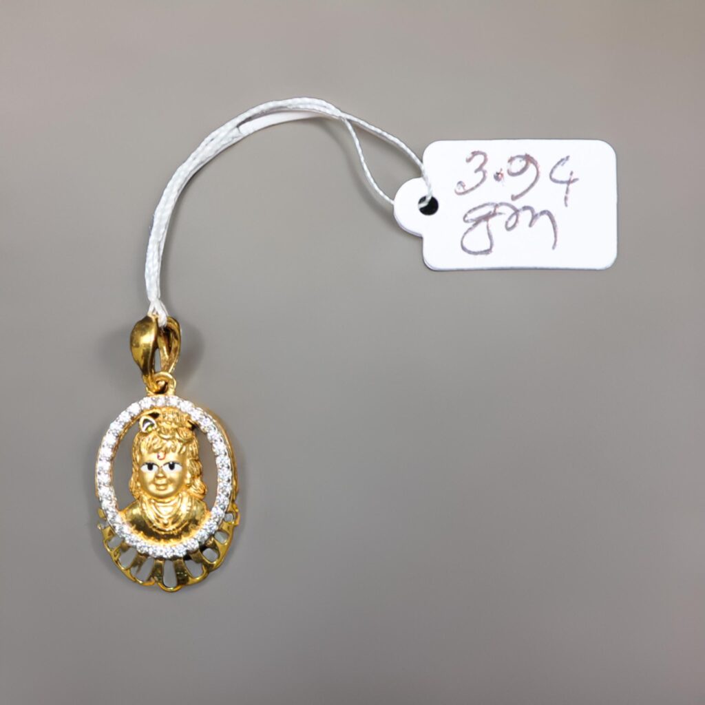 Expertly crafted from pure 22kt gold, the pendant features a detailed and serene portrayal of Lord Krishna, adorned with intricate designs that reflect the deity’s divine beauty and charm. The high-quality gold enhances the pendant’s luminous shine, ensuring it stands out in any light and remains a cherished piece for years to come.