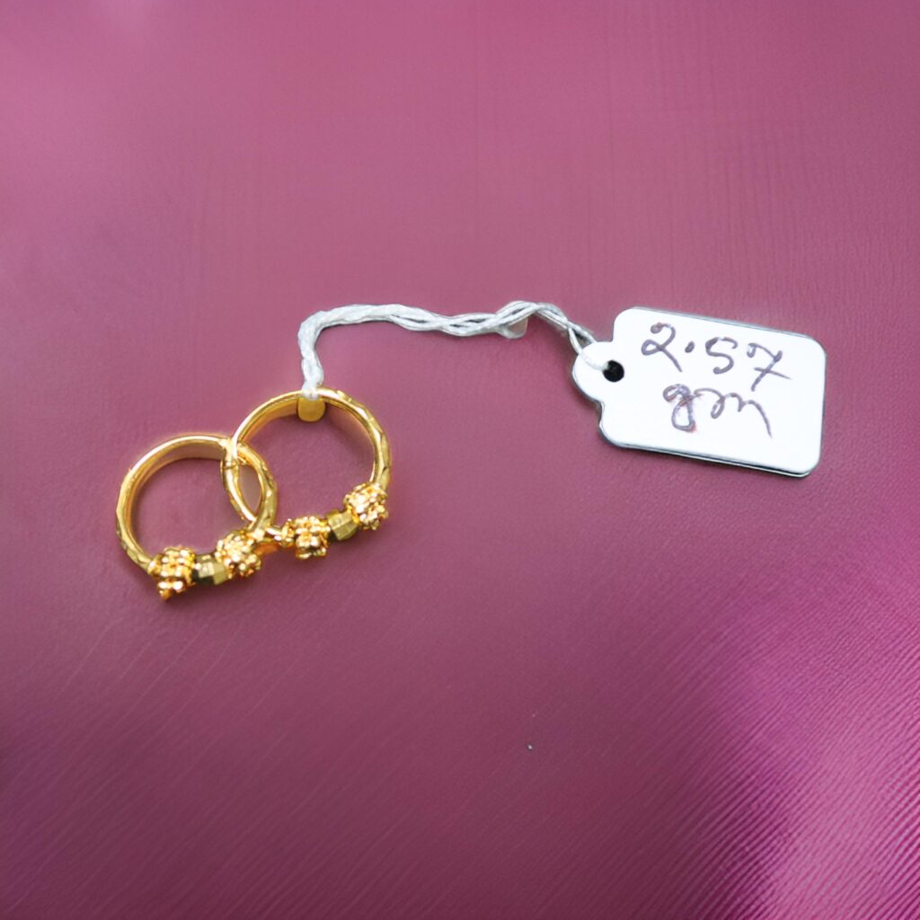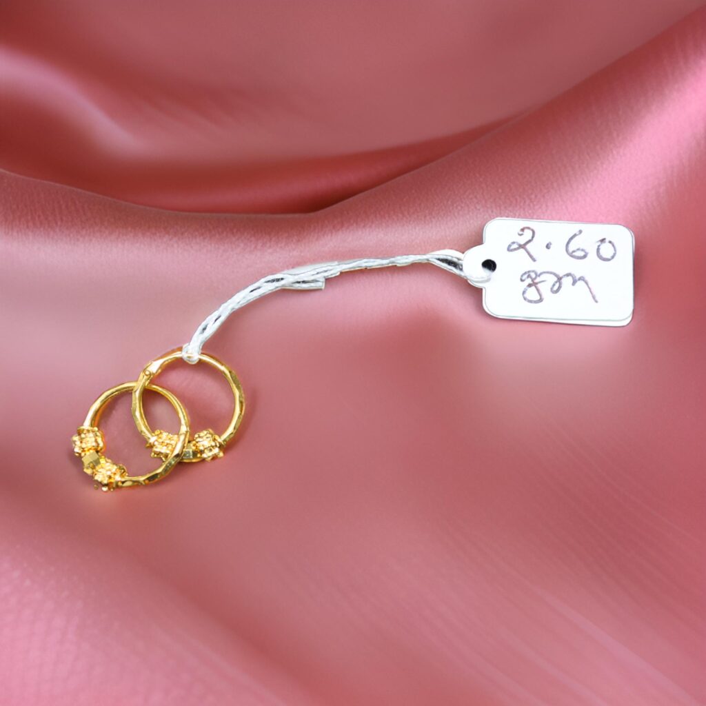 Adorn yourself with the radiant splendor of these 22kt gold earrings, weighing 2.76 grams. The intricate design and high-quality craftsmanship make these earrings a standout piece in any jewelry collection. Perfect for both everyday wear and special occasions, they add a touch of luxury and sophistication to any outfit. The rich, warm glow of the gold complements all skin tones, making them a versatile accessory. Crafted with care and precision, these earrings are a testament to the enduring beauty and value of gold. Wear them alone for a subtle statement or pair them with other pieces from our collection for a coordinated, chic look.